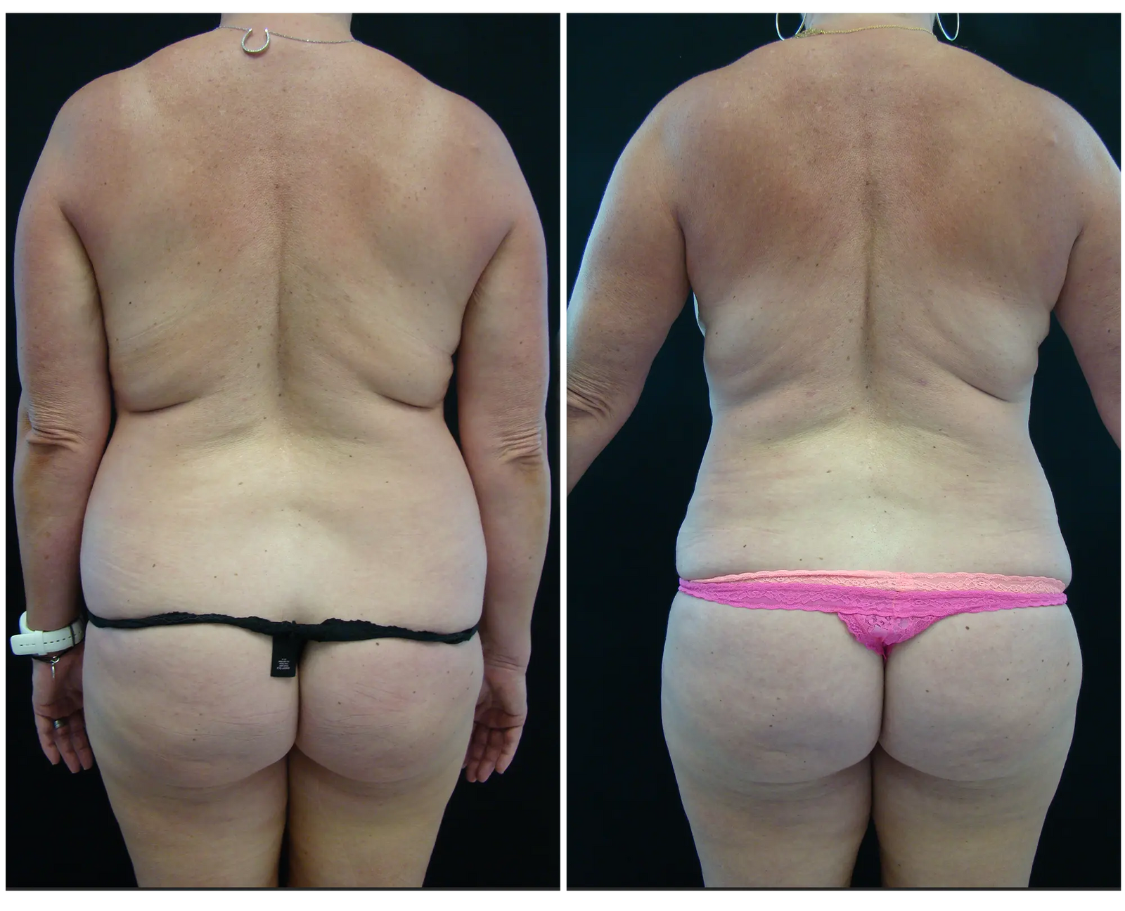 Circumferential laxity and sagging of the stomach, waist and lower back is very common following massive weight loss from bariatric surgery (gastric bypass). The lower body lift or circumferential body lift removes the extra skin along the waistline circumferentially, tightens the abdominal wall and lifts the lateral thighs and buttocks. Liposuction is also frequently performed for contouring of the thighs and trunk.